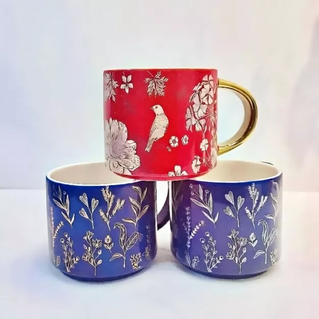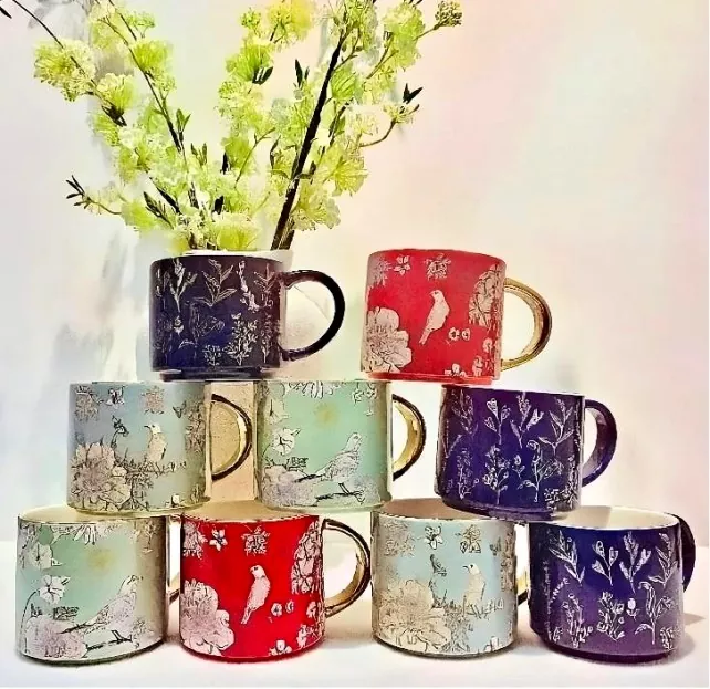 Hoc Ceramic Mug cum electroplato aurum manubrio, meticumque ficti ficti decals, incorporatur a unique leporem inspirati natura. Sive suus 'a mollibus texturas flores, et Vibrans formae nimble avium, aut captiving exempla naturalis color cuneos, in Mug delicata captures dona Flora, Fauna et Vibrans colores. Ad sectam omni style, in Mug est scriptor manubrio est customizable. Et aurum, patella version lucet cum dives, aureum Hue quod similis 18k aurum, addendo tactum ex ruditatis. Potest etiam ut amet ad vestri ventus color.