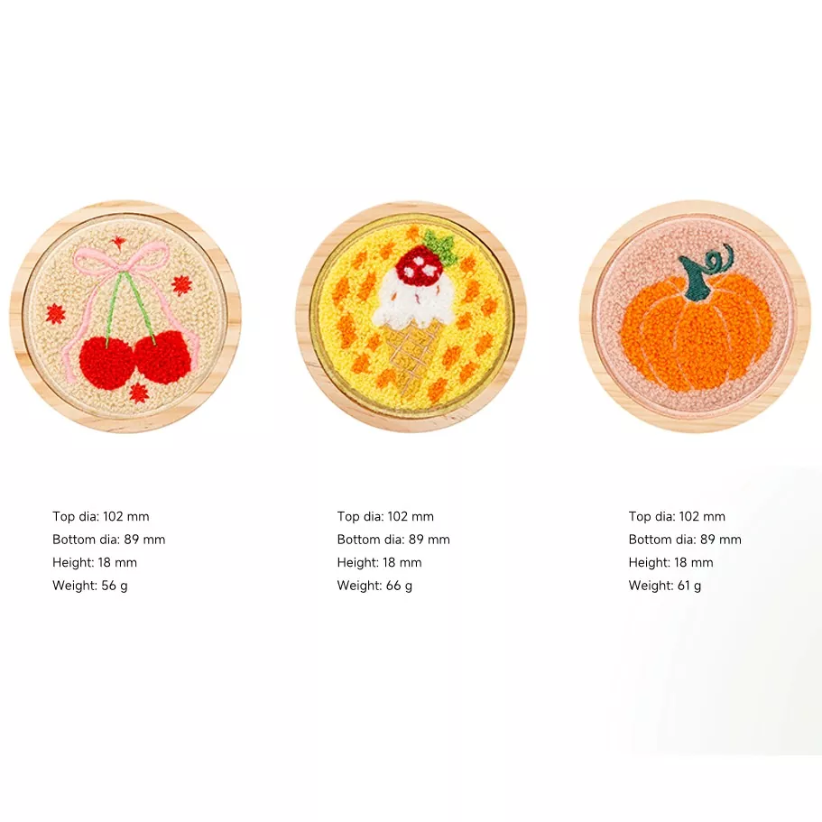 Byf scriptor cute handmade Eco-amica lignea operculis meticulosous texta lignum tabulae et fugatur bombicis filum. Quisque features unique tres-dimensiva exemplaria (ut cucurbitis elixis, cerasa, et placentas) cum Vividior, dives colores et calidum, handmade sentire. In marginibus de ligno diligenter rotunda manu, et arcte texta texta acts ut a denique moat, custodiens pulveris et aerem ex hydria. Operculo acta sealant et remota naturalis coaster. Tantum positus in triclinium mensam vel capulus mensam, statim transformat in tranquillo ligno pluma, addendo tactus cuteness quotidie.